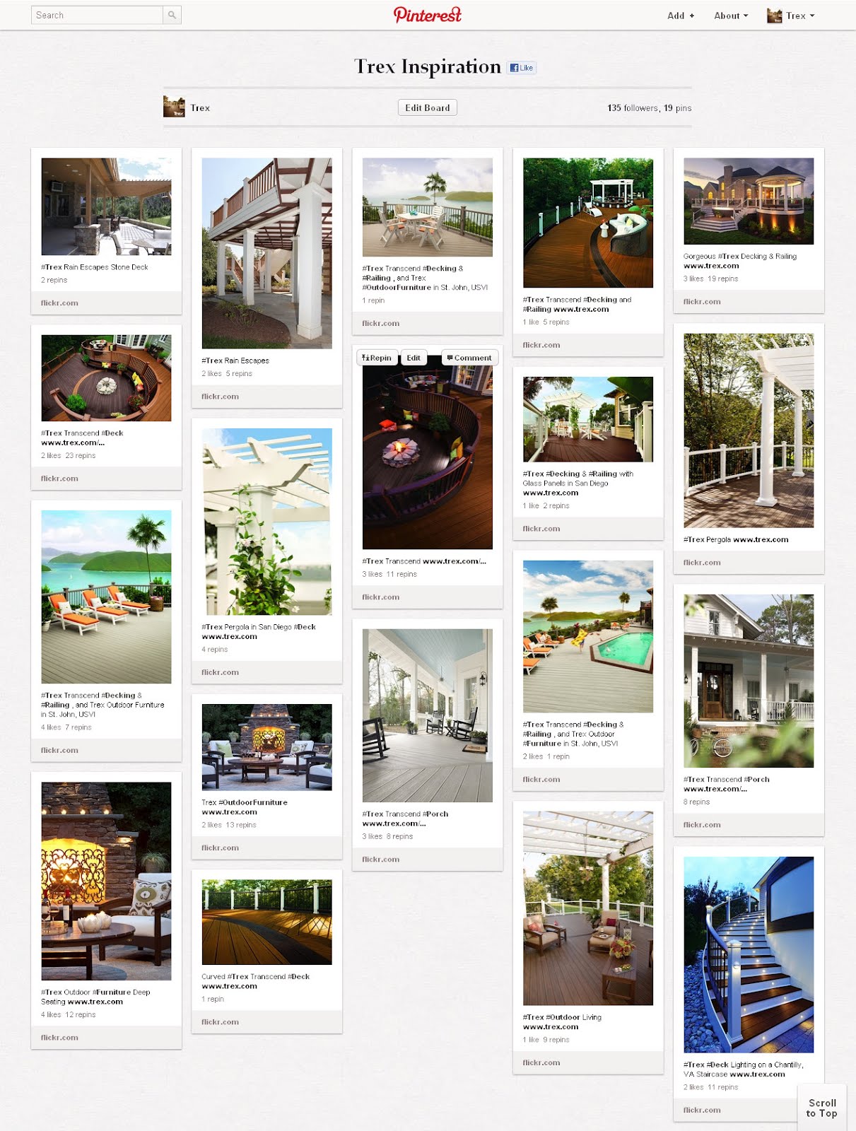 In only two years, the social photo sharing website Pinterest has attracted approximately 11.7 million unique users and drives more referral traffic to retailers than Google+, YouTube and LinkedIn combined. LCWA recently helped develop a Pinterest page for our client Trex. In addition to showcasing the brand’s inspirational outdoor living photography, we created themed boards with ideas for weekend DIY projects, grilling recipes and going “green.” Working together with Trex’s advertising agency, we’re constantly posting fresh, dynamic content, building our follower base and strategizing ways to turn “pins” into purchases! Check out the Trex boards at https://pinterest.com/trexcompany/.