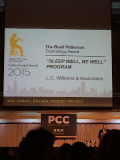June has started off right at LCWA! We were honored to receive awards this month from prestigious local PR groups the Publicity Clubof Chicago (PCC), the Public Relations Society of America (PRSA)Chicago and the International Association of Business Communicators(IABC) Chicago. We were very proud of all of our awards but one stands out among the rest: the PCC’sBuell Patterson Technology Achievement Award for outstanding use of emerging technologies, including social media, in a communications program. The Technology Achievement Award is one of the five cumulative “best of the best” awards that the PCC bestows on the best work out of its Golden Trumpet award winners. We received the Technology Achievement Award for the American Academy of Sleep Medicineprogram, “Sleep Well, Be Well,” which is aimed at educating Americans about the extreme importance of sleep for overall health. In addition to national media results from CNN, the “Today Show,” USA Today and more, the program also featured many engaging Twitter chats, microsites and infographics, as well as an online pledge for patients vowing to “Stop the Snore” and seek treatment for sleep apnea. The AASM program also won an Award of Excellence at the PRSA Chicago ceremony.