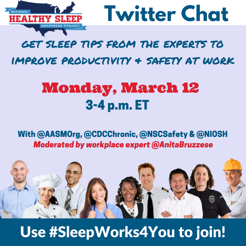 LCWA and client the American Academy of Sleep Medicine (AASM) recently launched the Sleep Works 4 You campaign to educate employees and employers on the dangers of workplace fatigue, including tips on getting enough sleep to stay safe and remain productive.As part of the campaign, we held a Twitter chat last Monday – one day after daylight saving time, when employees are very likely to be especially fatigued due to the time change. In addition to AASM (@AASMOrg), participants included experts from the CDC (@CDCChronic), National Safety Council (@NSCsafety), National Institute for Occupational Safety and Health (@NIOSH) and Sleep Research Society (@ResearchSleep). Leading the discussion was moderator @AnitaBruzzese, an award-winning journalist, author and blogger specializing in career/workplace issues.