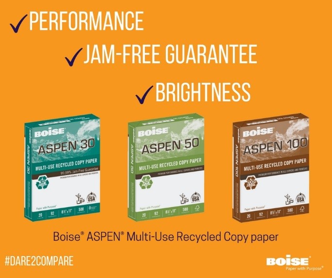 Recycled Paper?” Video Contest, where entrants were asked to create a short video explaining why they choose recycled paper over non-recycled paper, while encouraging others also to do so. In conjunction with the video contest, we worked with eight online workplace influencers to promote the premium qualities of Boise ASPEN® papers and conduct side-by-side tests of recycled and non-recycled varieties. Through the user-generated content from the video contest and influencer program, we strategically utilized third-party quotes throughout a three-month long LinkedIn campaign. The quotes were brought to life with bold visuals and attention-grabbing copy.